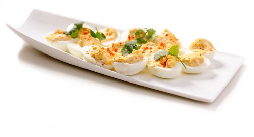 Luộc trứng, sau đó cắt làm đôi, tách lòng đỏ ra. Bạn có thể dùng thêm Pho mát bào nhỏ, trộn đều với lòng đỏ trứng. Thêm chút Mayo, mù tạt, ớt, thì là, chút giấm rồi trộn đều. Cho lòng đỏ vào lại lòng trắng trứng và thưởng thức thôi.