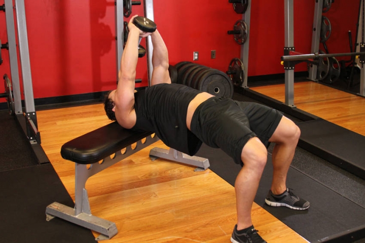 Nắm lấy một dumbbell với hai tay và nằm lên một chiếc ghế tập. Từ đây, hãy nhấn dumbbell thẳng lên trên mặt bạn, sau đó hạ tạ xuống dưới ra phía sau đầu xa nhất mà bạn có thể. Kéo tạ dumbbell về tư thế ban đầu để kết thúc rep tập.