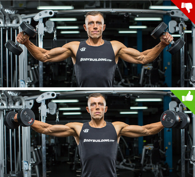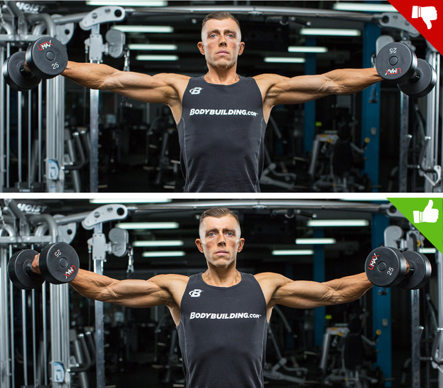 Một số người thường khóa khớp để mỏ rộng hoàn toàn cánh tay của mình. Ở đỉnh của chuyển động, trông họ giống như chữ T. Đây là một sai lầm khi tập vai rất nghiêm trọng.