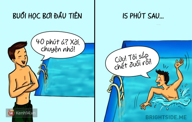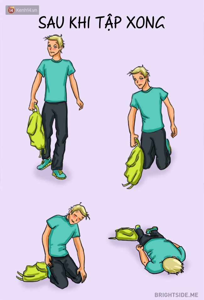Để biết những khách hàng trung thành trong phòng tập đã phải trải qua những “cực hình” ngày đầu như thế nào, chúng ta hãy cùng xem bộ tranh vừa dí dỏm vừa thực tế dưới đây nhé: