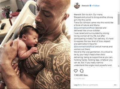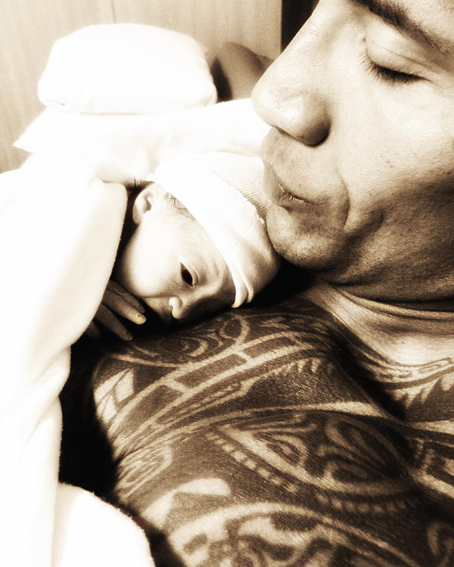 Cảm xúc dâng trào khi đón cô con gái thứ 3 chào đời, Dwayne đã chẳng thể giấu được niềm vui sướng. Anh bế cô bé trên tay, ánh nhìn âu yếm như muốn nói, sẽ dõi theo mọi bước chân của con trên đường đời. Thực sự dù là người mạnh mẽ nhưng chứng kiến hành trình vượt cạn khó khăn này, anh vẫn cảm thấy rất xúc động và khâm phục sức chịu đựng của bạn gái.