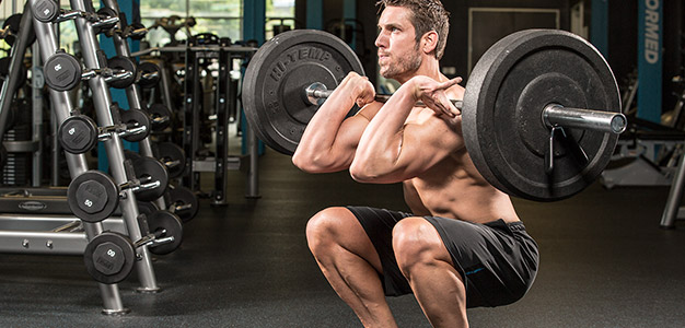 Đứng thẳng người với hai chân mở rộng bằng hai vai, hai tay nắm lấy một chiếc tạ barbell ở phía trước phần ngực trên (chú ý: bạn có thể nâng tạ bằng đầu ngón tay hoặc đan chéo hai tay đều được). Tiếp theo, đẩy hông về phía sau và gập hai đầu gối cùng lúc sao cho cơ thể được hạ xuống thấp nhất có thể. Cuối cùng, bật dậy thật mạnh và đưa người trở về vị trí ban đầu.