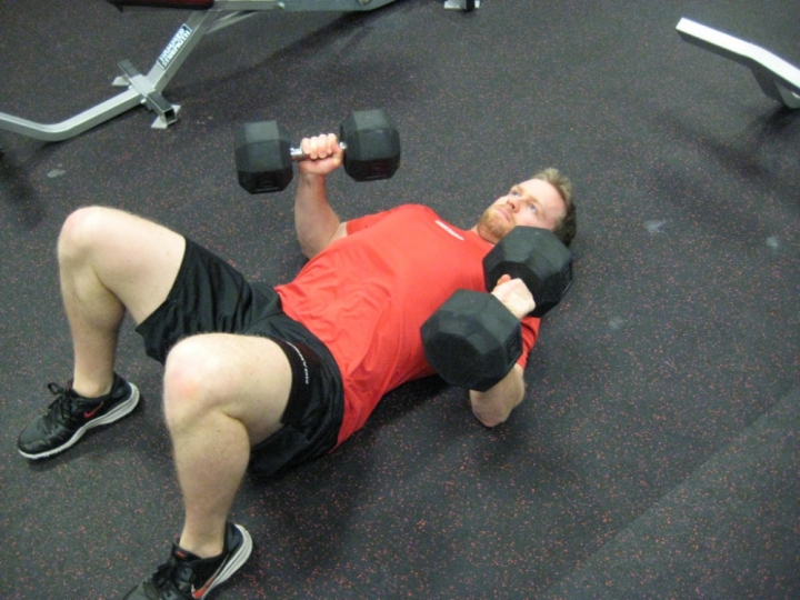 Lưu ý không cong lưng khi đẩy tạ lên.