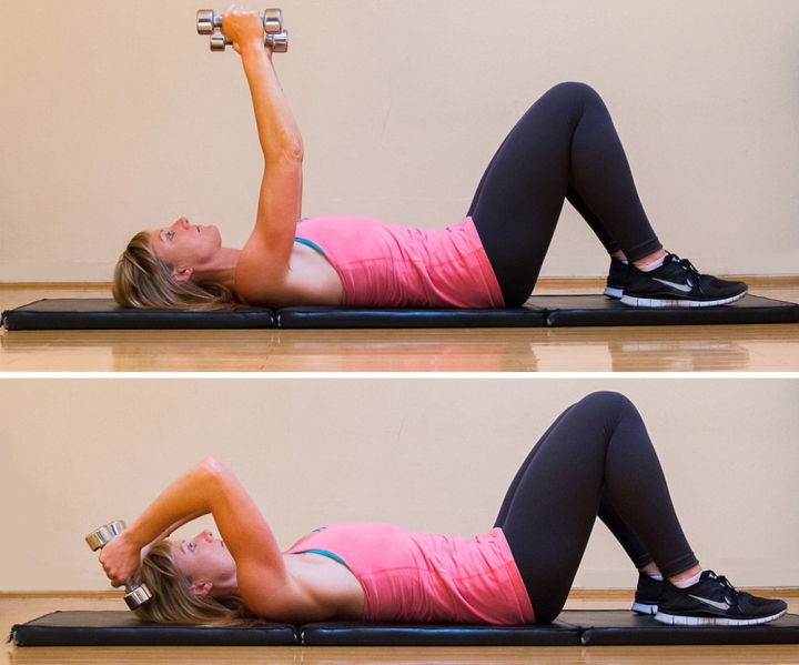 • Sử dụng cơ tay sau để kéo tạ lên.