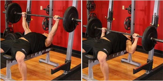 – Bài tập ngực với ghế bằng sử dụng thanh đòn: