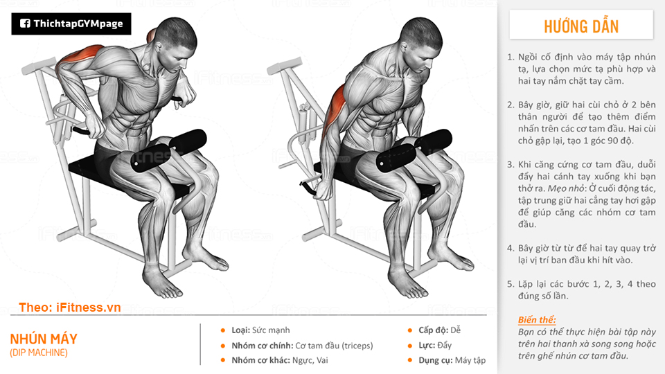Tổng quan về Nhún máy tập tay sau – Dip Machine