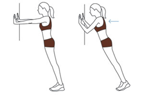 Động tác chống đẩy vào tường là bài tập đơn giản dễ thực hiện hơn nhiều so với động tác chống đẩy hít đất với sàn thông thường và cũng dễ thực hiện ở nơi công sở hơn. Động tác này giúp tập luyện cho cơ tay, cơ ngực và cơ lưng. Trong quá trình chống đẩy, nhớ hóp bụng để bài tập đơn giản hiệu quả hơn.